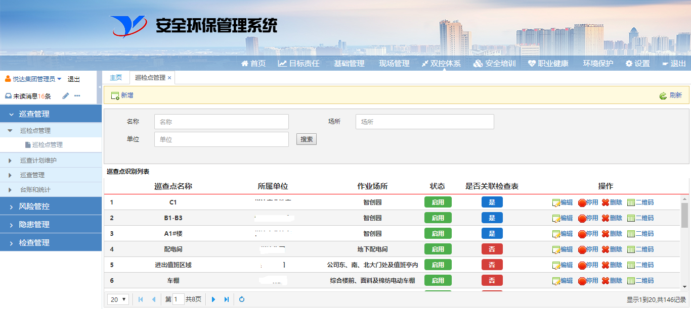 3. 巡检管理模块为每一个巡检点生成特定二维码,并将二维码扫描记录实时上传云端,无需人工填报,从而实现巡检点的智能化监控。