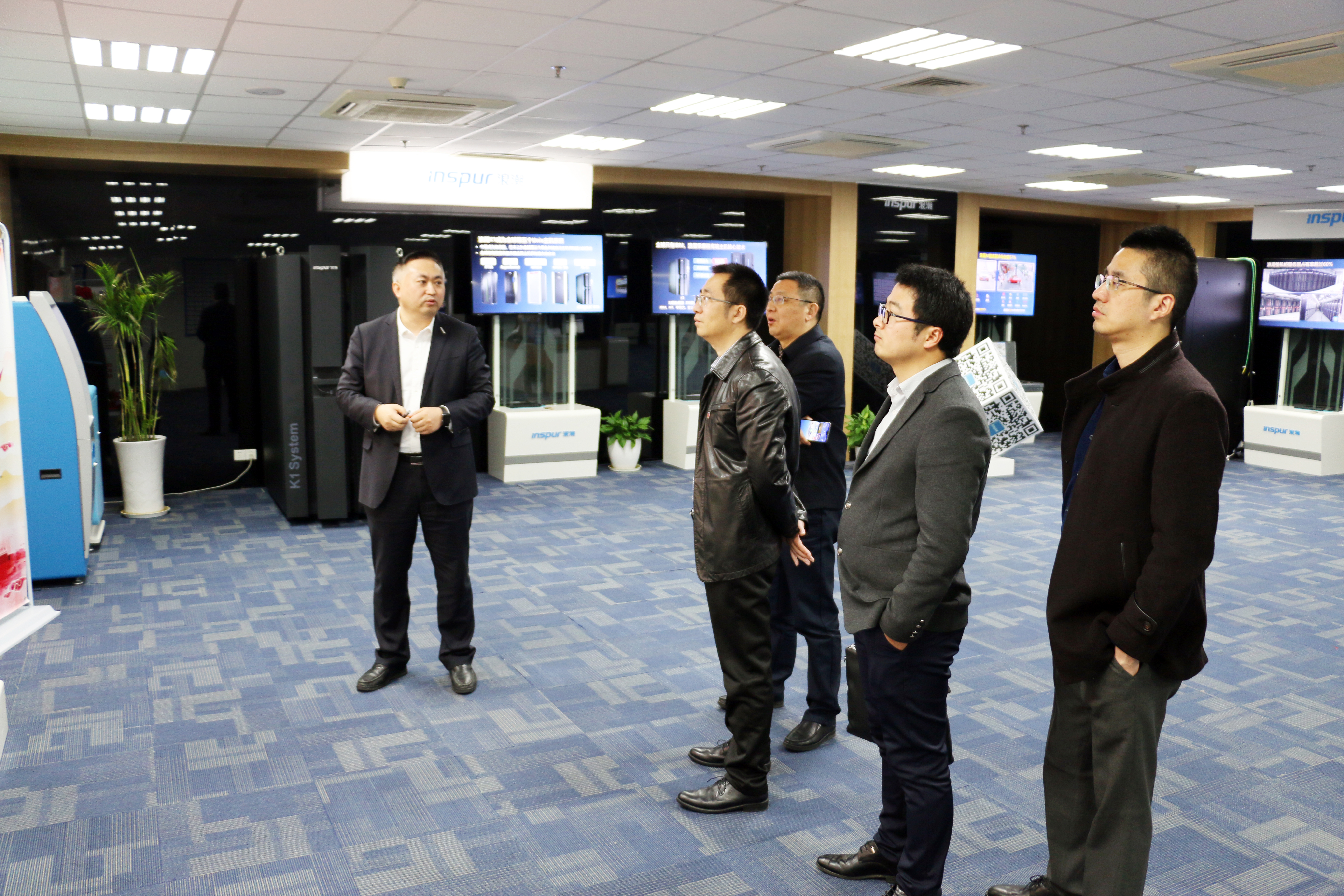 浪潮集团孙业志副总裁介绍了浪潮集团与江苏浪潮发展及团队的建设概况,并在展厅带领大家集体观看了习近平总书记参观浪潮集团总部时对浪潮提出厚望的视频。同时,孙总详细地介绍了智慧城市运营管理中心实施监控大屏、各类型服务器、云海平台、天元数据、浪潮云ERP、工业互联网解决方案、质量链生态体系等重点产品和业务模式,并期待与悦达集团及网科公司在数据中心、云服务、智慧政务等方面全面开展合作。